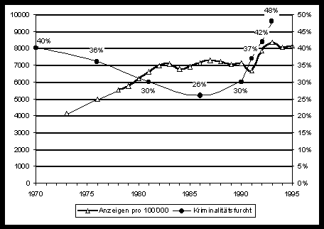 Die wachsende Verunsicherung wurde in aller Regel mit der "wachsenden Kriminalität", wie sie in den polizeilichen Kriminalstatistiken nachzulesen ist, erklärt.
